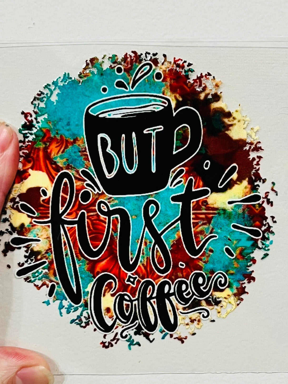 12P Western But First Coffee 4” Tall UV DTF Decal