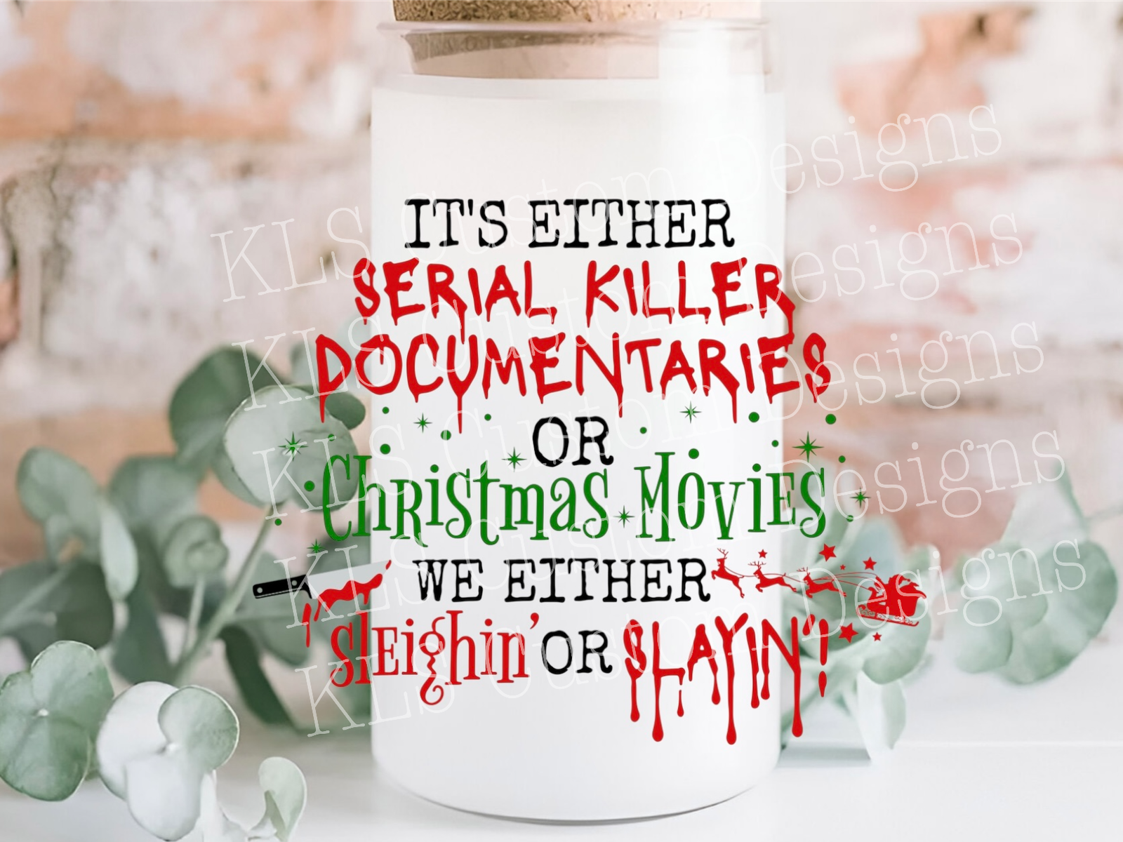 24Y Serial Killer Documentaries or Christmas Movies Slaying or Sleighing 4” Tall UV DTF Decal
