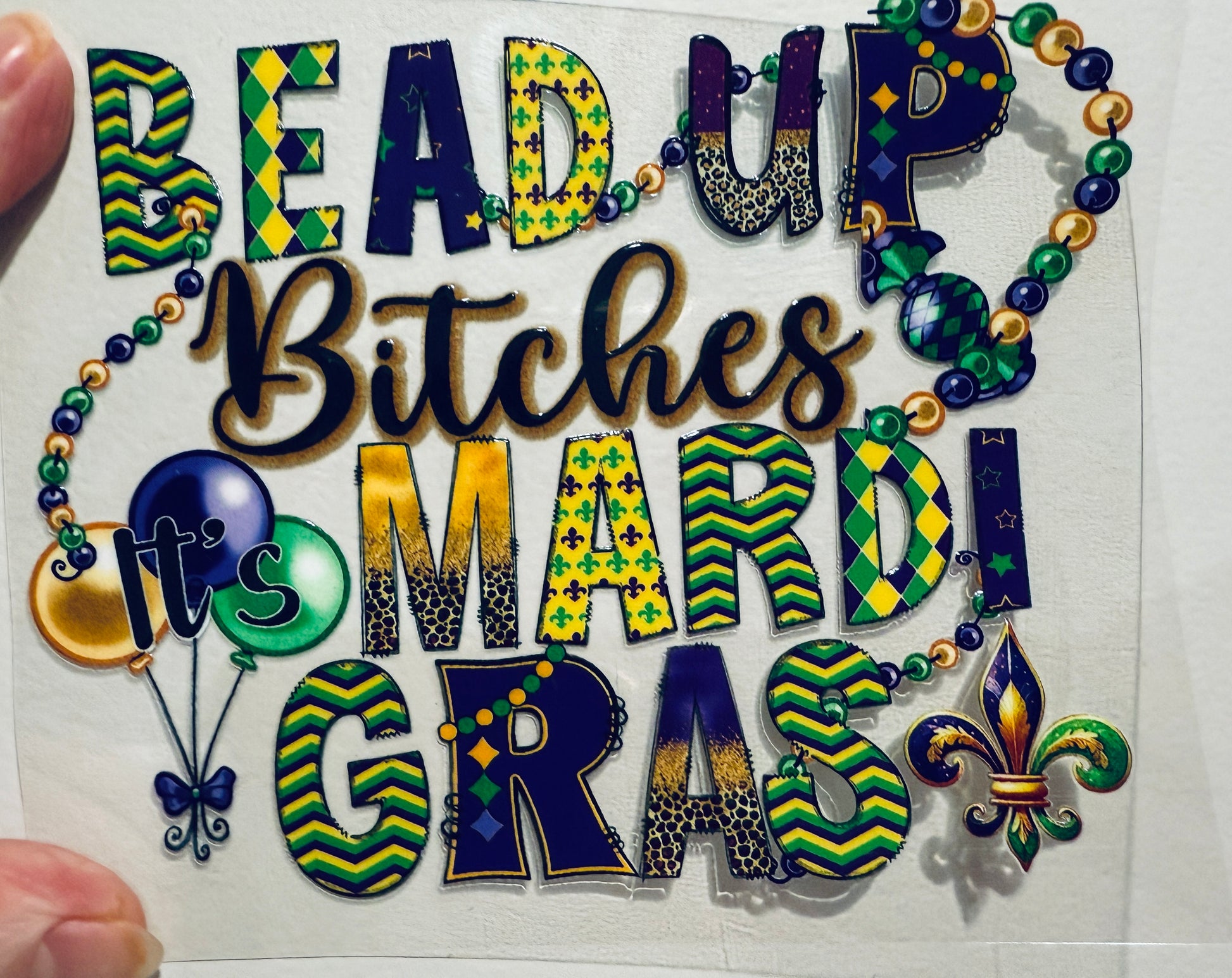 17Y Bead Up Bitches It’s Mardi Gras 4” Tall UV DTF Decal