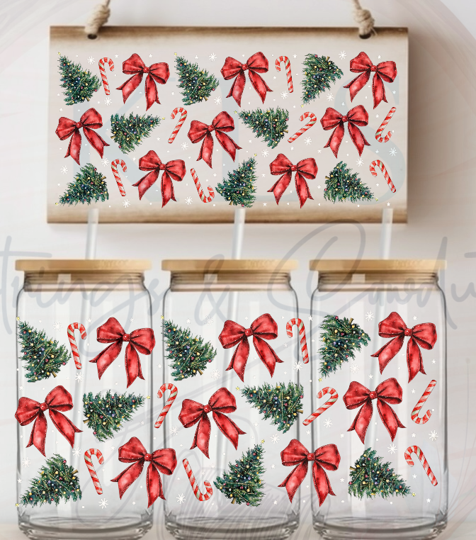 12P Christmas Trees Coquette Bows UV DTF Wrap