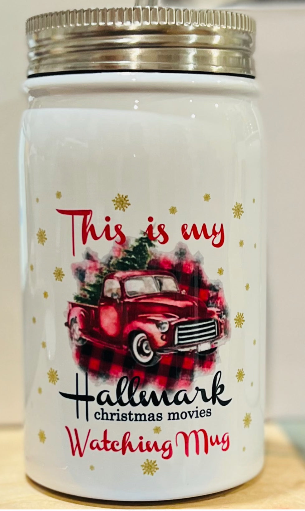 16B Christmas Truck Movie Watching Mug UV DTF Decal
