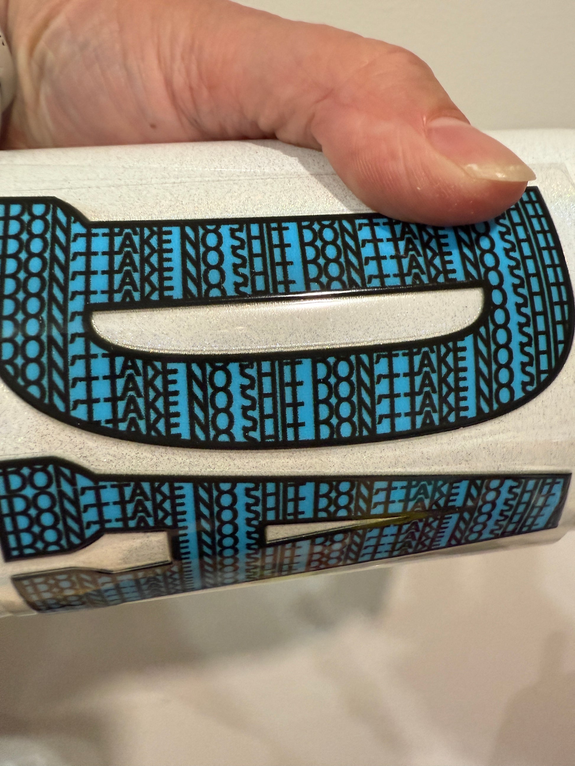Our prints are vibrant and can be applied to glass, plastic, wood, metal and most hard surfaces. Once applied, they provide an embossed effect that is permanent and waterproof. UV DTF Prints are not dishwasher safe.