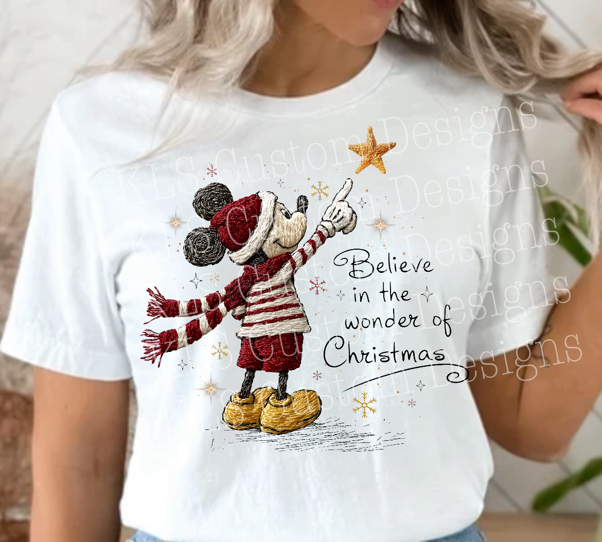 Faux Embroidery Mouse Believe In The Wonder Of Christmas Ready To Press DTF Print