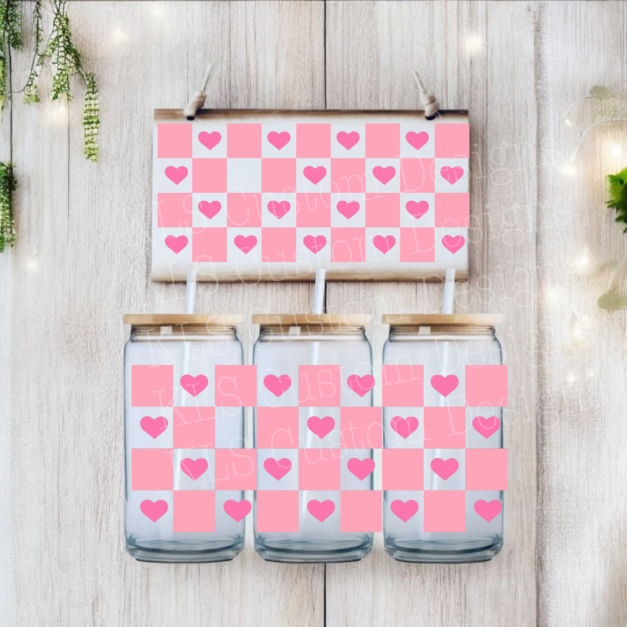 G1 Pink Heart Checker Pattern UV DTF Wrap